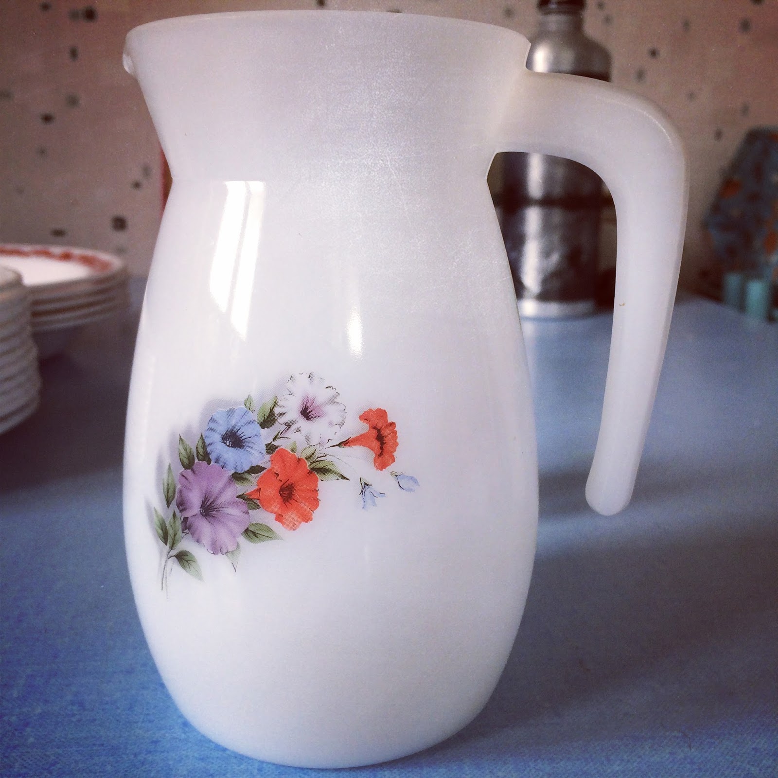 Vous l’aurez compris, je suis fan de ce verre opalin et de ces fleurs et fruits finement dessinés. Et pour une brise-fer comme moi, cette vaisselle « incassable », est la seule qui résiste à mes mouvements brusques. Alors si en chinant, vous trouvez quelques pièces (principalement des sixties ou seventies) pour 1 € ou 2, n’hésitez pas. J’apprécierai le cadeau autant que s’il vous avait coûté 120 € 😉