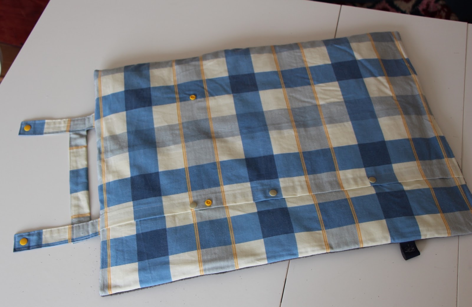 J’ai ajouté deux lanières d’un côté, des pressions encore et une poignée.