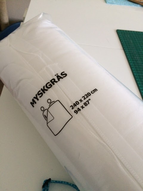 | Le coussin réalisé en couette Ikea. Attention, ne pas repasser… ça colle au fer ! |