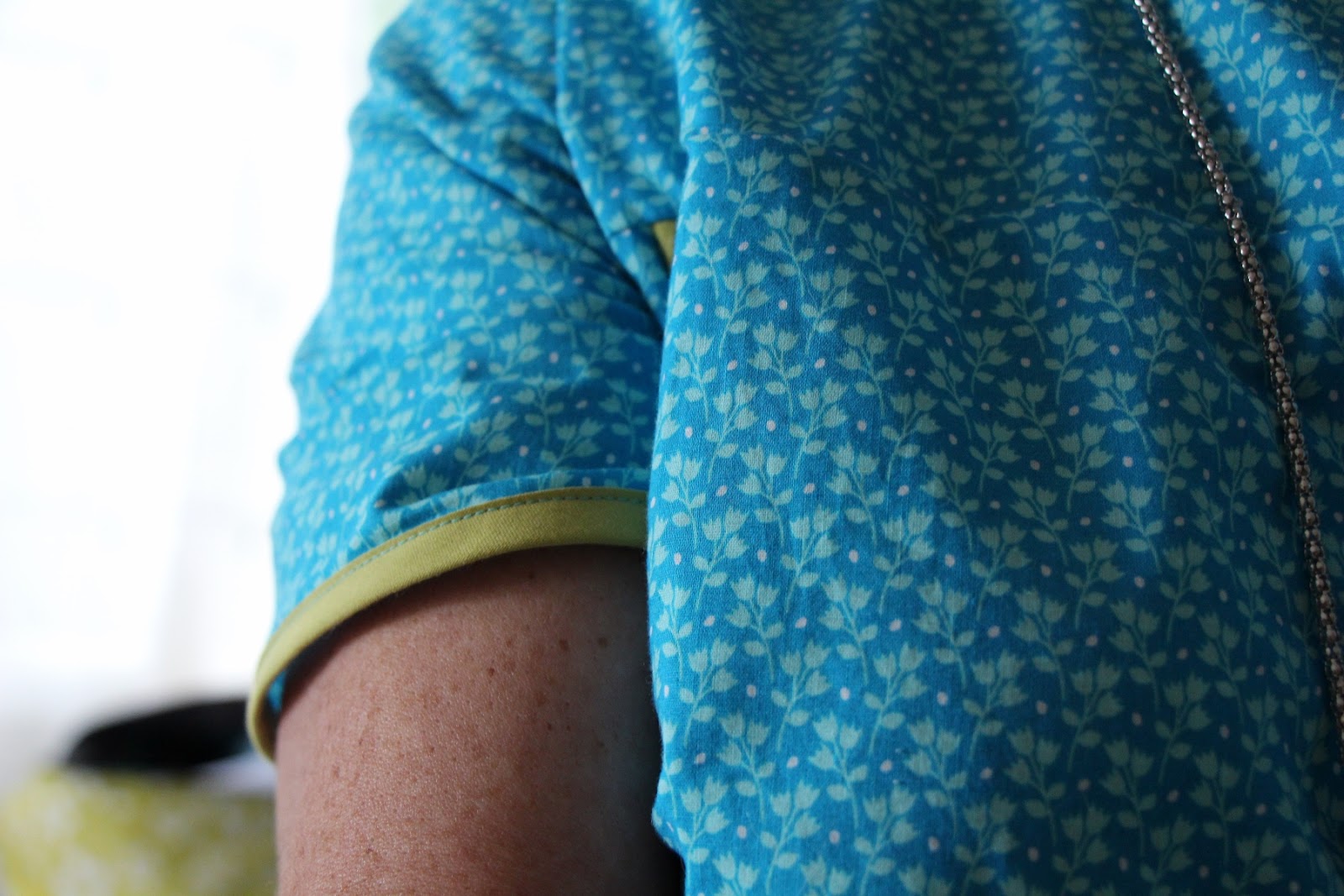 A un moment, j’ai bien cru (troublée par le motif du tissu) avoir créé une blouse pour faire le ménage. Mais avec les manches, ça a tout changé. ouf. Je vais pouvoir sortir avec. 😉